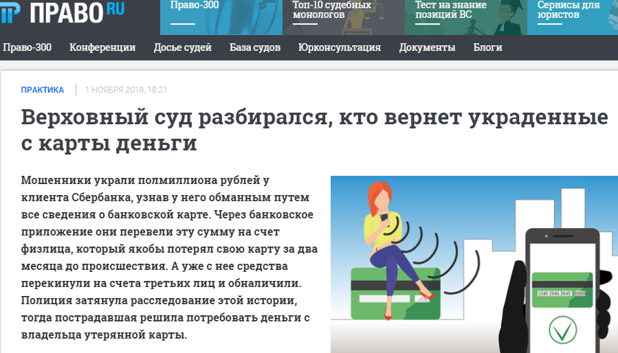 Information and legal portal Pravo.ru posted the comment by Artem Grishin, Advisor, Deputy Managing Partner of Alliance Legal CG, in the article on the topic: "The Supreme Court understood who would return the money stolen from the card."