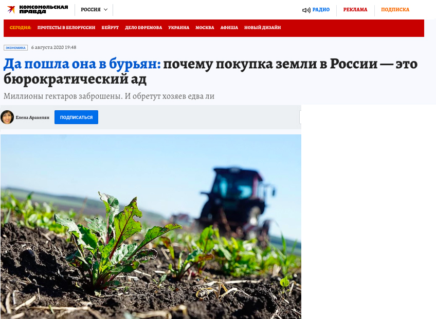 В последнее время популярны прогнозы, что под влиянием пандемии наконец может начаться обратный отток людей из мегаполисов «на землю». И кстати, даже в современной России земельный вопрос отнюдь не на последнем месте. Ибо даже очень льготной сельской ипотекой под невиданные для России 3% в деревню людей не заманишь, если делать им там нечего и зарабатывать не на чем. А чем прокормиться на селе? Самый логичный вариант — свое сельхозпроизводство на своей земле. Комментарий Ольги Калинченко для Комсомольской правды